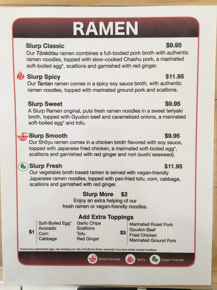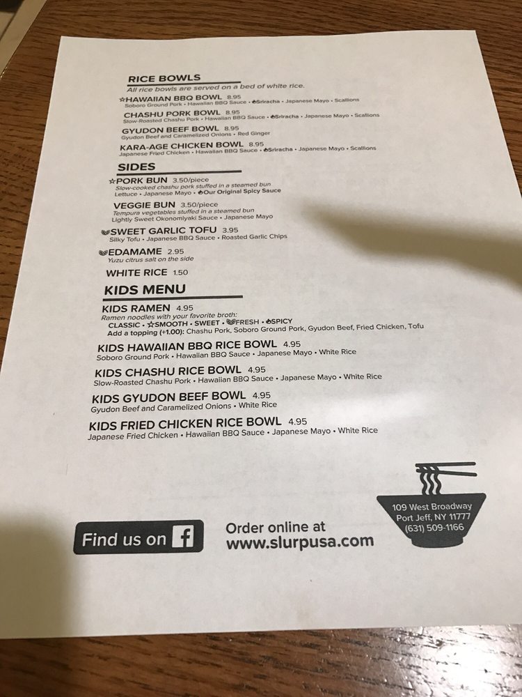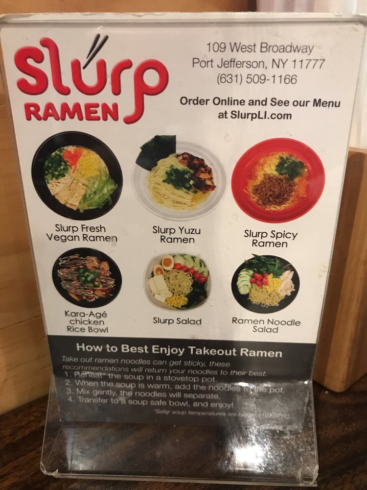 Slurp Ramen, located in Port Jefferson, NY, offers a unique dining experience with its fast-casual setting and delicious menu options. Customers rave about the fresh and tasty food, particularly highlighting the huge portions and flavorful broth. The restaurant is known for its quick service, making it a great option for all ages. The menu includes a variety of ramen dishes, salads, and soups, with options for soy-free and vegan diets. Customers appreciate the friendly staff and overall welcoming atmosphere. Slurp Ramen is a must-visit for Ramen lovers looking for an affordable and satisfying meal. With a range of amenities such as outdoor seating, wheelchair accessibility, and delivery services, Slurp Ramen ensures a memorable dining experience for all.